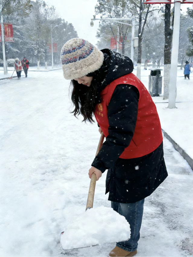 此次活动不仅彰显了学子们吃苦耐劳、团结协作的精神,更用实际行动诠释了“奉献、友爱、互助、进步”的志愿精神,面对大雪带来的困难,同学们们积极投身其中,用双手为社区和周边群众创造了一个方便、安全的环境。